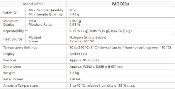 • Las mediciones son más rápidas que el método de pérdida por secado usando una secadora.